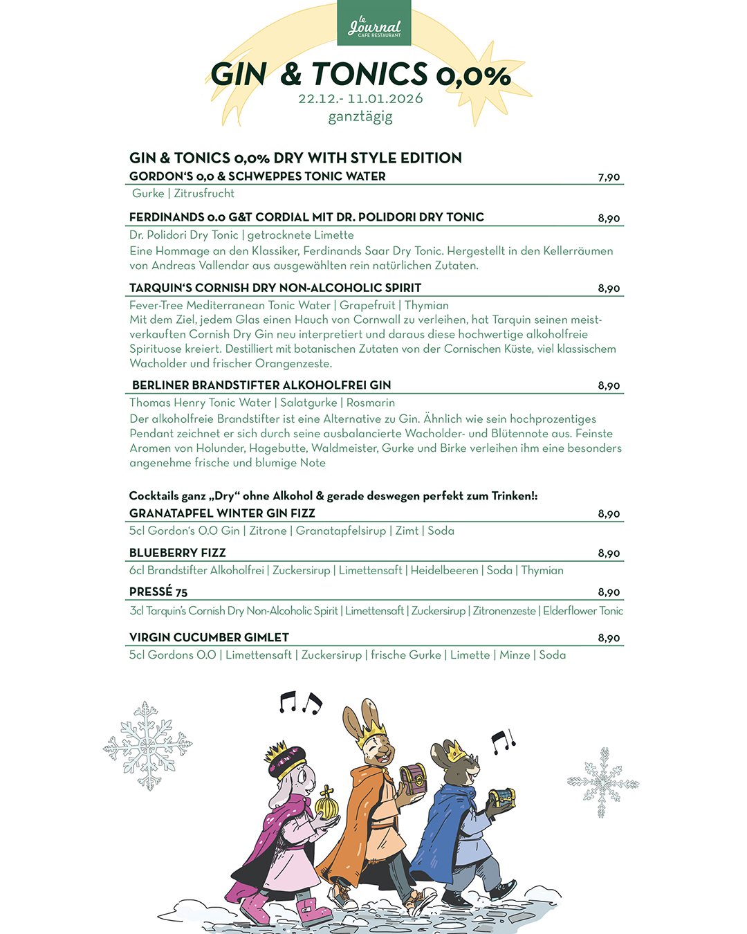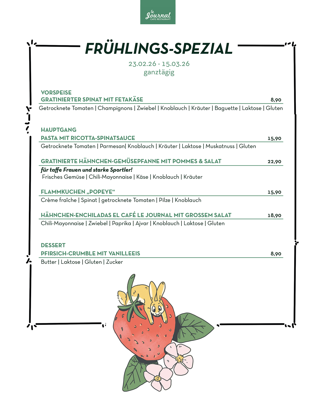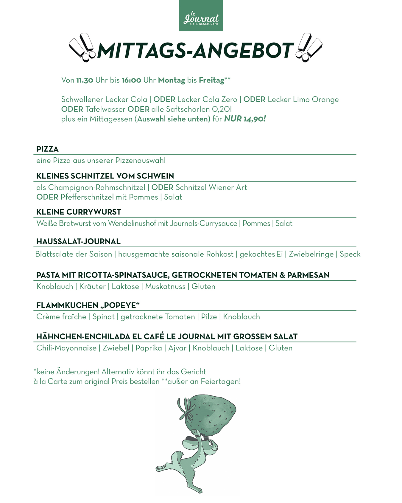 durchgehend warme Küche von 11.30 Uhr bis Open End (mind. bis 21.00 Uhr)